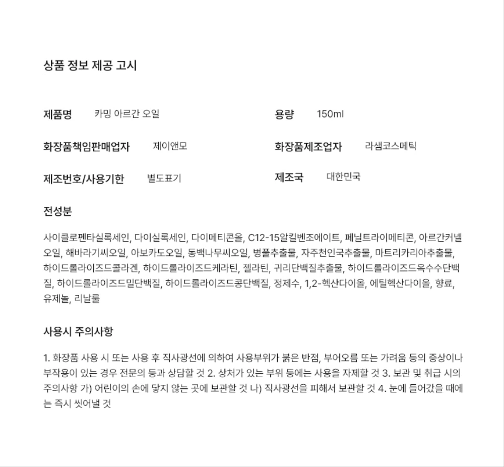 - ★1+1★ [에센스] 디알 카밍 아르간 헤어 오일 데일리 헤어 에센스 150ml